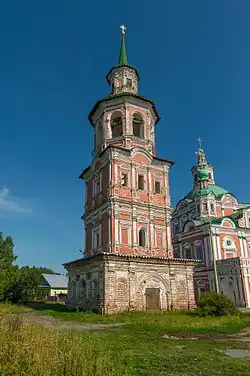 À l'ouest de l'église un clocher a été construit en 1765, de forme octogonale, à étages, de style baroque également. Il est surmonté d'un toit en flèche, ce qui est caractéristique en Russie à cette époque.