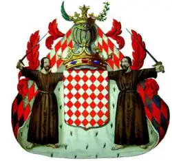 Les religieux sont présents, au moins en apparence, depuis les origines de la dynastie des Grimaldi selon une légende sur le fondateur François Grimaldi dit Malizia (François la Malice), descendant d'Otto Canella, consul de Gênes en 1133 : selon cette légende[20], dans la nuit du 8 au , le guelfe François Grimaldi, ne disposant que d'une petite armée, s'empare de la forteresse par la ruse. Déguisé en moine franciscain (par coïncidence, « monaco » veut dire moine en italien[21], il pénètre avec un de ses compagnons (lui aussi vêtu d'une bure de moine) dans la forteresse sans attirer la méfiance, pouvant ainsi ouvrir à ses soldats qui s'en emparent facilement. De cet épisode naît son surnom, Malizia, et les armes de Monaco : deux franciscains armés d'une épée. Si les Franciscains existent depuis leur fondation par François d'Assise et leur reconnaissance par le pape Innocent III en 1210, le premier couvent dans la région, celui de Cimiez à Nice, ne sera fondé qu'en 1546.