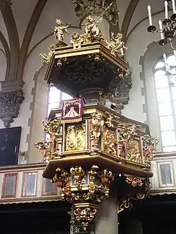 La chaire de l’église de Bückeburg est particulièrement remarquable. Elle est due au sculpteur Hans Wolf, de Hildesheim, qui a aussi travaillé sur la façade. Les sculptures en haut-relief sur la cuve représentent les principaux événements de la vie du Christ : à gauche, une annonciation et une nativité, au centre, une crucifixion, et, à droite, une résurrection et une ascension. De part et d’autre de la chaire, deux statues de belle taille représentent soit les apôtres Pierre et Paul, soit Moïse et Paul ("la loi et la grâce"). Les angelots sur l'abat-voix exhibent les instruments de la passion du Christ.