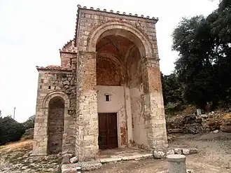 Située à environ 5 km à l'ouest du village, l'église moderne est initialement le narthex ou litê de l'église du katholikón du monastère[1]. Le monastère n'est par ailleurs pas identifié et n'est mentionné dans aucune source ou inscription, mais le nom de « monastère de Stérna » pourrait lui être attribué. D'autre part, il est possible que ce monastère soit le même que le monastère de la Theomêtor, mentionné dans l'hagiographie de Mélèce le Jeune, auquel cas il daterait de la fin du XIe siècle. Du point de vue architectural, il est daté de la fin du XIIe siècle[1],[2].