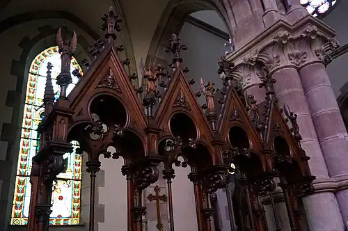 Construite en 1876, l'église est de style néo-gothique.