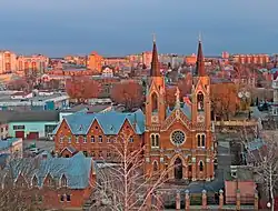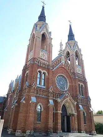 L'église de briques rouges de style néogothique est richement décorée et possède des vitraux. Une maison paroissiale de deux étages est également bâtie à côté qui comporte aussi les locaux des organisations charitables paroissiales, une bibliothèque et le presbytère.