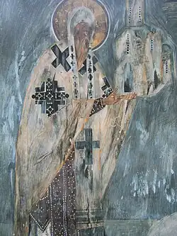 - ↑ Victor Lazarev note que vers 1910 elles furent nettoyées du noir de fumée et lavées avec des produits qui altérèrent les couleurs et les détruisirent en partie. Les fresques de la partie occidentale ( Résurrection du Christ et deux figures d'anges ) furent, quant à elles, habillement nettoyées en 1930. Voir : " Mosaïques et fresques de l'ancienne Russie " , Les éditions de l'Amateur, 2000, (ISBN 2 85917 307 2) p. 280.