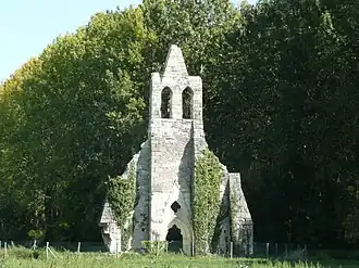 Il ne reste que la partie centrale de la façade pignon ouest de l'église avec un portail exceptionnel. Elle est soutenue jusqu'au faîte (partie supérieure de la charpente d'un édifice) par deux contreforts à trois étages. Le sommet du fronton de l’entrée principale fut orné d’un triangle postérieurement. En effet, la pointe en pignon a été tronquée (on a retranché une partie). Cette dernière abrite un clocher-mur ou campanile à double bretèche qui ne contiennent plus aucune cloche[2],[3].