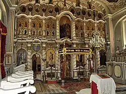 À l'intérieur, l'iconostase a été peinte par Kоnstаntin Pаntеlić en 1864, ce qui en fait l'une des réalisations les plus tardives de ce maître (1808-1868) ; il s'y montre influencé par Konstantin Danil[2]. En plus de ces icônes, Pаntеlić a notamment peint le trône de la Mère de Dieu et le trône de l'évêque[2]. En 1925, Vasa Pomorišac a peint plusieurs fresques pour l'église, dont une Entrée du Christ à Jérusalem et un Christ devant Pilate[2].