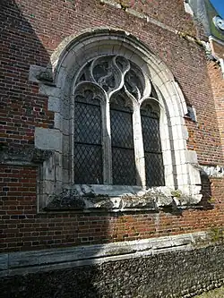 Construit en brique, l’édifice est de style gothique flamboyant.
