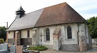 Particulière dans sa conception, l'église est construite en pierre pour le chœur, en bois et en torchis pour la nef. Le chœur est remarquable par ses ouvertures de style roman. L'église primitive aurait été construite par les Templiers[N 1],[3].