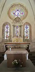 - le maître-autel du XVIIIe siècle surmonté d'un baldaquin supporté par quatre colonnes corinthiennes :