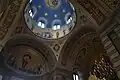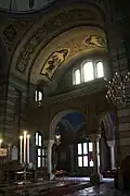 L'intérieur est richement décorée selon les canons byzantins, orné entièrement par de peintures à l'huile imitant la mosaïque. Dans le presbytère se trouvent trois autels. La grande lampe d'argent qui pend à l'entrée est un cadeau du tsar Paul Ier.