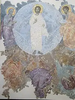 Les fresques datent de la seconde moitié du XIVe siècle. Il semble qu'elles aient été recouvertes de blanc au XVIIIe siècle. Son effacement a commencé dans les années 1910 et se termina à l'époque soviétique sous la conduite de restaurateurs de l'ancienne école. En même temps, la documentation photographique existante sur ces fresques a été rendue accessible.