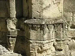 Les moulures des piliers sont constituées d'une section octogonale. De chaque côté se trouve un tore circulaire outrepassé.