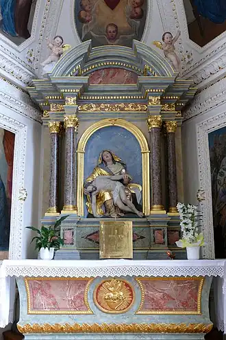 Autel de saint Jean-Baptiste (XVIIIe siècle). Détail du relief "Baptême de Jésus" (XVIIIe siècle). Autel de la Vierge ou de la Croix (XVIIIe siècle).