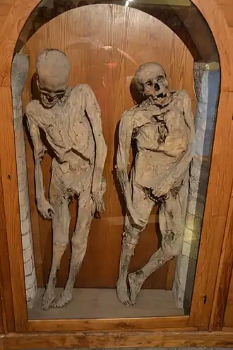 La particularité est constituée par 18 momies naturelles datant du Moyen Âge et de la Renaissance exposées derrière l'autel.