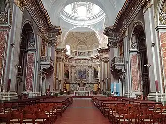 La coupole possède une grande fresque représentant le Paradis (1684) de Giovanni Battista Benaschi, qui a également peint les fresques de la chapelle Saint-Michel[1]. Cette chapelle possède une peinture de Marco Pino et les lunettes ont été peintes par Luca Giordano et Francesco Solimena. L'autel principal a été conçu par Ferdinando Fuga. Dans le chœur se trouvent cinq toiles de Solimena. L'autel de la chapelle de la famille Filomarino, à droite de l'autel principal, a été conçu (1647) par Francesco Borromini. Les mosaïques de la chapelle sont de Giovanni Battista Calandra à partir de peintures de Guido Reni. Le relief des quatre symboles évangélistes sur l'autel est de François Duquesnoy, et deux lions de marbre sont de Giuliano Finelli. La sacristie a été construite en 1626 d'après une conception de Ferdinando Sanfelice. La crypte a été décorée à fresque par Belisario Corenzio.