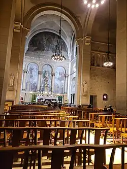 Les murs de la nef et du transept sont décorés de peintures consacrées à la Vierge Marie, réalisées par Lucien Jonas en 1944[1]. Celles du chœur figurent l'Immaculée Conception. Une statue de la Vierge orne le chœur et une statue d'Antoine-Marie Claret, fondateur des Clarétins, est installée dans le transept[3]. D'autres peintures et statues représentent des saints espagnols. Les vitraux historiés, aussi consacrés à Marie et aux saints espagnols, sont l'œuvre de Mauméjean[3]. Un autel est dédié au Sacré-Cœur de Jésus, un autre à saint François Xavier[11].