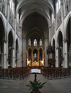 Un maître-autel en marbre de carrare, bronze et pierres semi-précieuses, sculpté par Edouard Buisine sur les plans de Jules Batigny, occupe le fond du chœur. Il a été présenté à l'Exposition Universelle de 1900[8]. Les grands candélabres qui entourent le maître-autel et les girandoles qui ornent les piliers ont été réalisés par la maison Placide Poussielgue-Rusand.