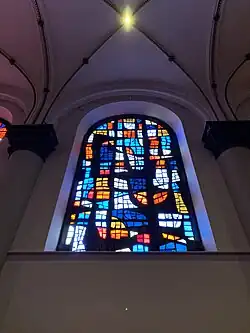 Au sommet du chœur de l’église, on peut compter sept vitraux du XIXe siècle. Sur le côté droit et le côté gauche du chœur, quatre vitraux représentent chacun un ange. Sur la partie centrale, se trouvent également trois vitraux. Le premier représente aint Thérèse d’Avila. Le deuxième met en scène Notre-Dame du Mont-Carmel (la Vierge Marie) remettant le scapulaire au saint Simon Stock. Le troisième représente Jean de la croix.