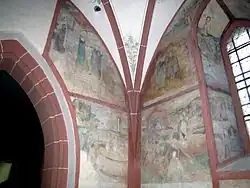L'église est au milieu d'un cimetière fortifié. La partie la plus ancienne du clocher de l'église date de la seconde moitié du XVe siècle. L'enceinte est flanquée de six tours permettant le tir avec une couleuvrine. Un fossé est mentionné en 1472[1].