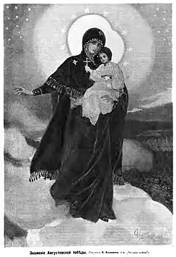 pour que « cette image inspire les jeunes soldats de la Garde nationale qui ont prêté serment et s'engagent sur le chemin de la défense de la Patrie »[42]. En réponse, Victor Zolotov a remercié le patriarche et a noté que la Garde nationale participait également à l'opération contre l'Ukraine. Zolotov a souligné que les « nazis » se cachaient dans le dos « des vieillards, des femmes, des enfants, installant leurs batteries de tir dans les jardins d'enfants, les écoles, les maisons particulières, mais que nous allons vers l'objectif prévu, pas à pas et que la victoire sera derrière nous, et cette icône protègera l'armée russe et accélèrera sa victoire »[42],[40],[43].