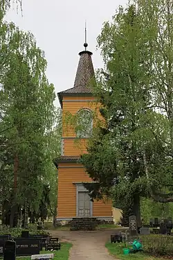 Carl Ludvig Engel a conçu le clocher de 28 mètres de hauteur construit en 1834 par Erkki Leppänen. La toiture du clocher date de 1998[2].