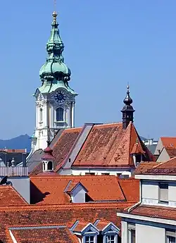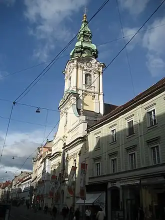 - (de) Cet article est partiellement ou en totalité issu de l’article de Wikipédia en allemand intitulé « Grazer Stadtpfarrkirche » (voir la liste des auteurs).