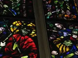 Les vitraux gothiques ont été détruits pendant la Seconde Guerre mondiale. Albert Birkle, un artiste de Salzbourg dont l'art était considéré comme dégénéré sous le Troisième Reich, fut chargé de les redessiner. Ses thèmes principaux étaient la résurrection et la souffrance de Jésus, mais ses vitraux firent un scandale dans les années 1950 car ils montraient Hitler et Mussolini aux côtés des bourreaux du Christ[1]. C'est la seule église au monde qui représente les deux dictateurs[2].