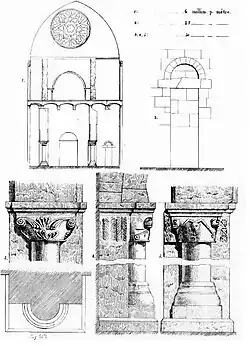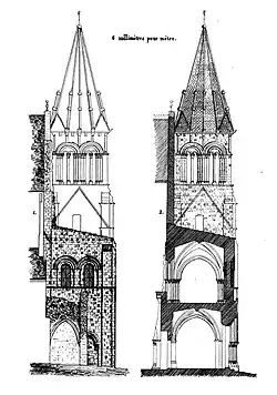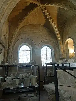 - ↑ « Salle au-dessus du narthex », notice no APMH045349, sur la plateforme ouverte du patrimoine, base Mémoire, ministère français de la Culture, « Premier étage du narthex, pilier », notice no APMH046046, sur la plateforme ouverte du patrimoine, base Mémoire, ministère français de la Culture ; voir aussi chez Alfred-Nicolas Normand, « Dépôt lapidaire : chapiteaux et têtes », notice no APNRM01237, sur la plateforme ouverte du patrimoine, base Mémoire, ministère français de la Culture.