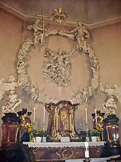 La partie protestante de l'église est une salle rectangulaire qui a été construite sur les murs de fondation médiévaux entre 1708 et 1721. Du côté ouest se trouve une extension de chœur rectangulaire de 1931 avec un vitrail du Christ ressuscité. Le reste du mobilier date essentiellement du XVIIIe siècle.