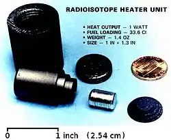 - ↑ (en) NASA Jet Propulsion Laboratory – décembre 1998 « DEPARTMENT OF ENERGY FACTS: Radioisotope Heater Units (RHUs). »