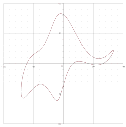 Les quatre paramètres fixes utilisés sont des complexes, d'affixes z1 = 50 – 30i, z2 = 18 + 8i, z3 = 12 – 10i, z4 = –14 – 60i. Le point d'affixe z5 = 40 + 20i est ajouté pour faire l'œil de l'éléphant et cette valeur sert de paramètre au mouvement de la "trompe"[4].