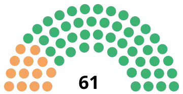 | 61 sièges de l'Assemblée législative (Majorité absolue : 31 sièges) | ||||||||||||||