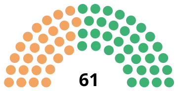 | 61 sièges de l'Assemblée législative (Majorité absolue : 31 sièges) | ||||||||||||||
