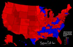 Elle oppose le président sortant Jimmy Carter à l'ancien gouverneur de Californie Ronald Reagan pour le Parti républicain. Le représentant de l'Illinois John Anderson, membre du Parti républicain mais défait battu lors des primaires du parti, se présente en candidat tiers parti sans étiquette partisane. De même, le candidat du Parti libertarien Ed Clark (en) parvient à bouleverser quelque peu le jeu politique. Cette élection marque un tournant dans la vie politique américaine pour plusieurs raisons. D'abord, elle marque le reflux d'anciens électeurs du Sud, notamment du Sud profond, vers le Parti républicain, qui l'emporte dans la quasi-totalité des anciens États confédérés, hormis en Géorgie et en Virginie-Occidentale[b]. Le parti, qui avait progressivement viré à droite à partir des années 1960 par sa prise en main par les conservateurs, achevait sa « révolution conservatrice »[5]. Cette élection voit également une partie des électeurs modérés du Parti démocrate se reporter sur le ticket du Parti républicain, marquant l'émergence du phénomène des Reagan Democrats. De plus, le parti parvint à reprendre la majorité au Sénat pour la première fois depuis 1952[6]. C'est également la première fois depuis 1940 qu'un président sortant est autant mis en ballottage pour la nomination par son parti[c].
