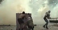 Si González n'appelle pas à manifester[107], des manifestations spontanées éclatent pour protester contre le maintien au pouvoir du président sortant. Celles-ci rassemblent des dizaines de milliers de personnes issues majoritairement de quartiers populaires[108]. Les manifestants brûlent des portraits de Maduro et déboulonnent 27 statues d'Hugo Chávez. Ceux-ci sont attaqués à coup de gaz lacrymogène par les forces de sécurité[109] et la répression fait 19 morts, dont au moins deux mineurs et un soldat de la Garde nationale bolivarienne[110],[111],[112]. Par ailleurs, plus de 700 personnes sont arrêtées par les autorités[113]. Le lendemain, María Corina Machado appelle à manifester devant les bureaux des Nations unies[114]. Maduro menace de l'arrêter elle et González[115].