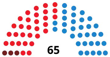 | 65 sièges de l'Assemblée (Majorité absolue : 33 sièges) | ||||||||||||||