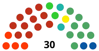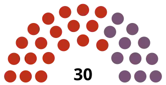 | 30 sièges du congrès étatique (Majorité absolue : 16 sièges) | ||||||||||||||