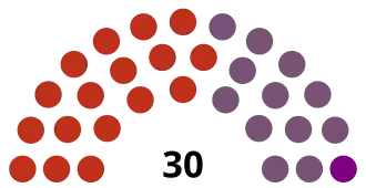 | 1 Gouverneur 30 sièges du congrès étatique (Majorité absolue : 16 sièges) | ||||||||||||||