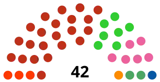 | 42 sièges du congrès étatique (Majorité absolue : 22 sièges) | ||||||||||||||