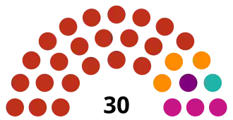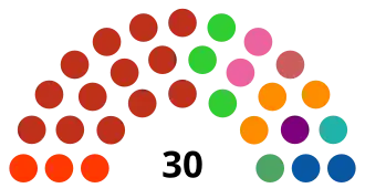 | 30 sièges du congrès étatique (Majorité absolue : 16 sièges) | ||||||||||||||