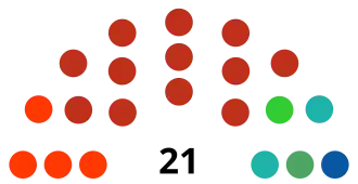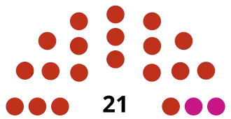 | 21 sièges du congrès étatique (Majorité absolue : 11 sièges) | ||||||||||||||