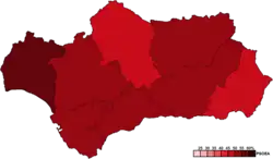 | PSOE-A | 96 080 | 55,72 | 8 | 172 595 | 52,02 | 8 | 215 390 | 54,02 | 9 | 357 272 | 53,52 | 11 | |||||