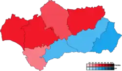 S'il arrive en tête, le Parti socialiste subit ce que ABC qualifie de « sévère correction », perdant, pour la première fois dans l'histoire de l'Andalousie autonome, sa majorité absolue au Parlement[23]. Avec 45 députés sur 109, il est talonné par le Parti populaire, qui en remporte 41[24]. Ce recul de 17 sièges du Parti socialiste s'explique aussi bien par le gain de 15 élus par le Parti populaire que par l'importante progression de la Gauche unie, qui passe de 11 à 20 parlementaires[23]. La Coalición Andalucista (es) connaît un résultat en fort recul, qui se traduit par l'échec de son chef de file et du secrétaire général du Partido Andalucista à obtenir un siège[23].