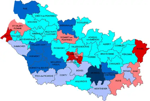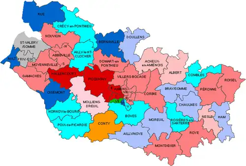 | Abbeville-Nord | Gilbert Mathon | PS | Abbeville-1 | Carole Bizet | UMP |