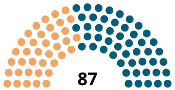 | 87 sièges de l'Assemblée législative (Majorité absolue : 44 sièges) | ||||||||||||||