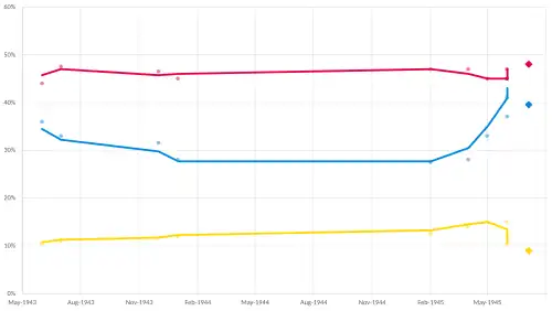 Ces élections, au sortir de la Seconde Guerre mondiale, se tiennent dix ans après les précédentes, les élections prévues pour 1940 ayant été repoussées en raison de la guerre. La coalition d'union nationale qui a prévalu durant le conflit prend fin en amont de la campagne électorale.