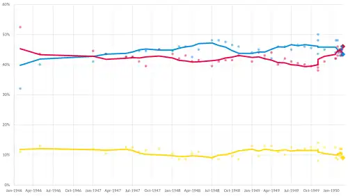 Les élections générales britanniques de 1950 se sont déroulées le . Le Parti travailliste de Clement Attlee conserve la majorité acquise aux élections de 1945, mais il ne dispose plus que d'une marge de cinq sièges. Pour bénéficier d'une meilleure avance, Attlee organise de nouvelles élections l’année suivante, qui aboutissent à la victoire des conservateurs.
