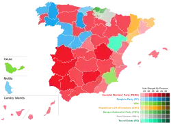 - ↑ (es) « El PSOE revalida la victoria pero empeora su resultado y tiene más lejos la mayoría », El País, (lire en ligne, consulté le ).