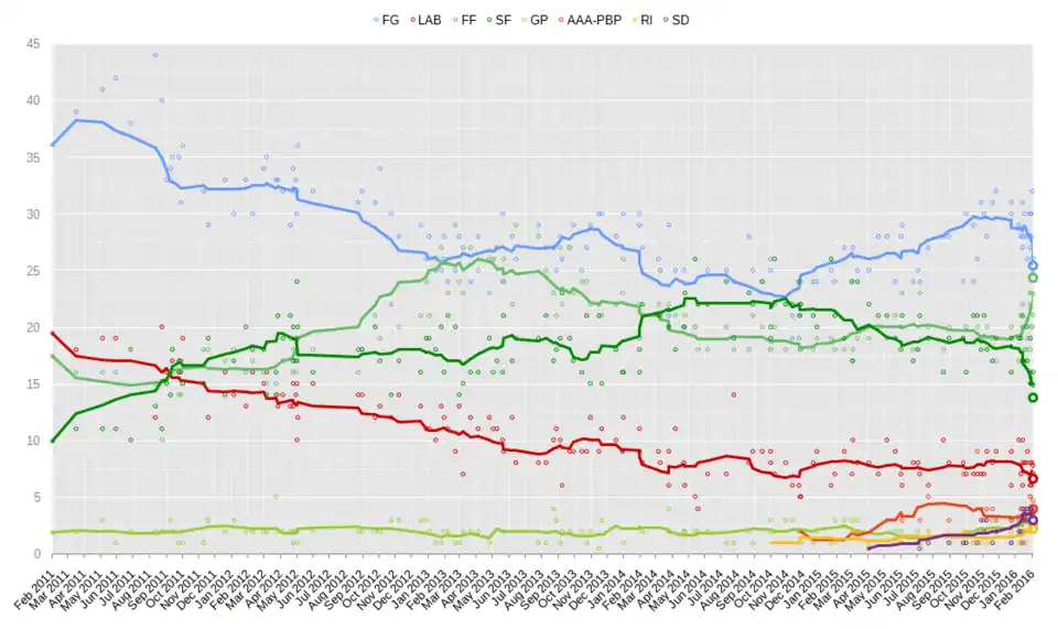 - ↑ (en) « Irish Times poll: Fine Gael on course to be biggest party ».