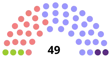 | 49 sièges de l'Assemblée législative (Majorité absolue : 25 sièges) | ||||||||||||||