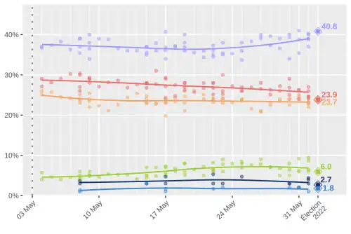 | 34 | 32 | 25 | 4 | 5 | Angus Reid | 910 | NC | ||